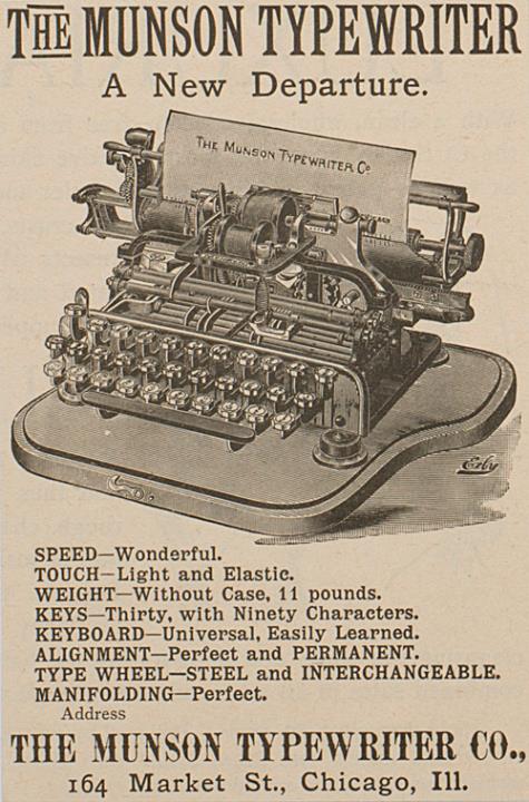Werbeanzeige für Schreibmaschine Munson monochrom