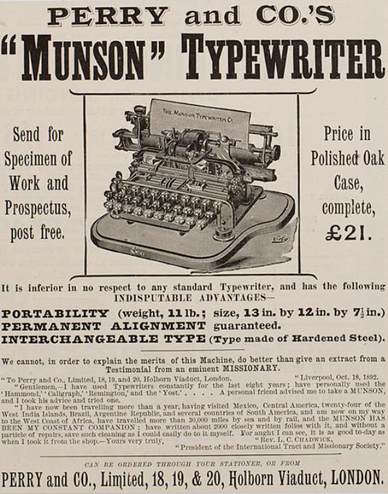 Werbeanzeige für Schreibmaschine Munson monochrom