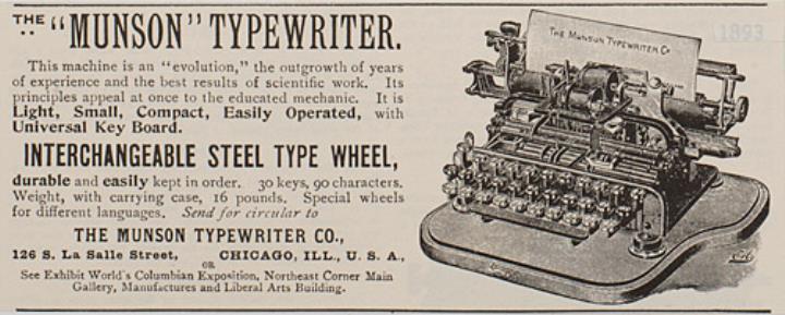Werbeanzeige für Schreibmaschine Munson monochrom