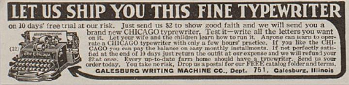 Werbeanzeige für Schreibmaschine Chicago monochrom