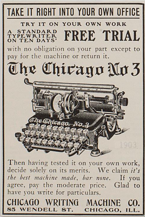 Werbeanzeige für Schreibmaschine Chicago 3 monochrom