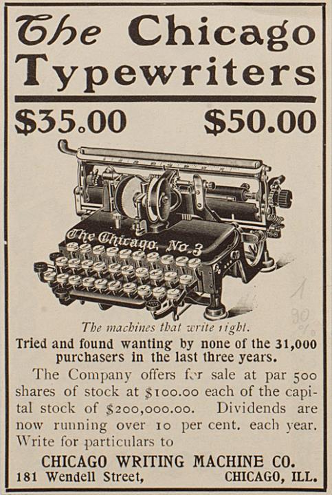 Werbeanzeige für Schreibmaschine Chicago 3 monochrom