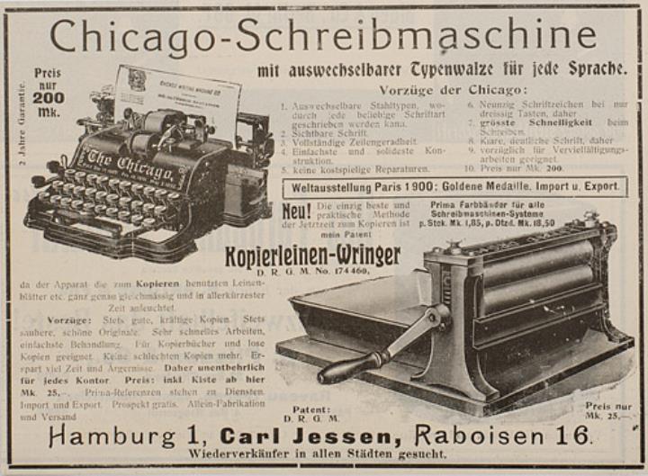 Werbeanzeige für Schreibmaschine Chicago monochrom