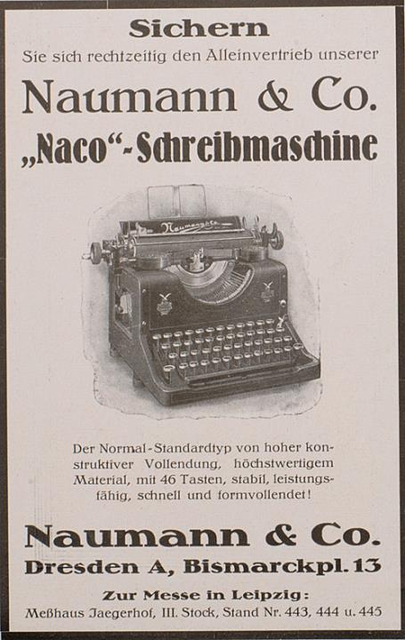 Werbeanzeige für Schreibmaschine Naumann & Co. monochrom