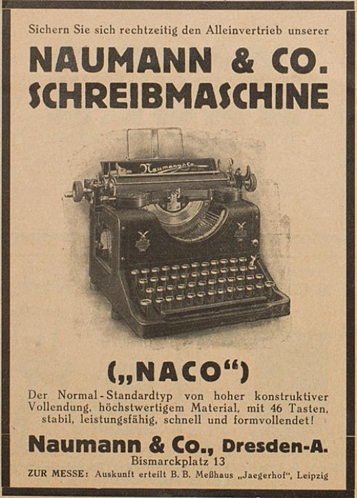Werbeanzeige für Schreibmaschine Naumann & Co. monochrom