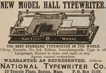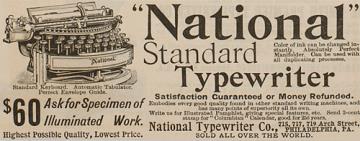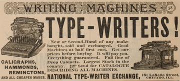 Werbeanzeige für Schreibmaschinenhandlung National Type-Writer Exchange monochrom