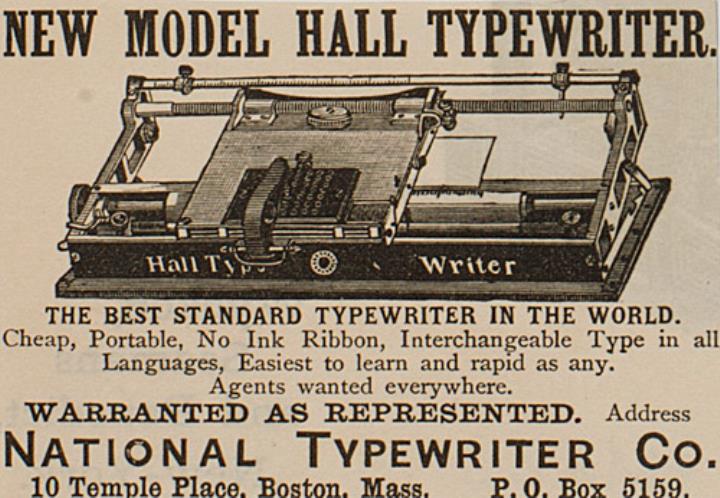 Werbeanzeige für Schreibmaschine Hall monochrom