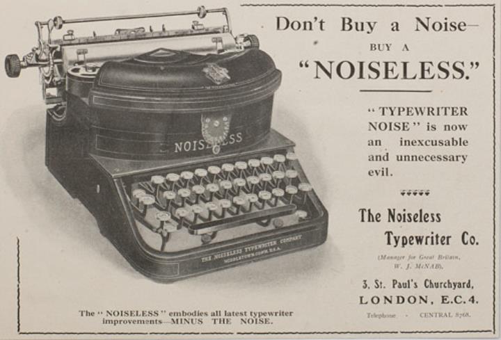 Werbeanzeige für Schreibmaschine Noiseless monochrom