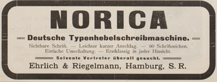 Werbeanzeige für Schreibmaschine Norica monochrom