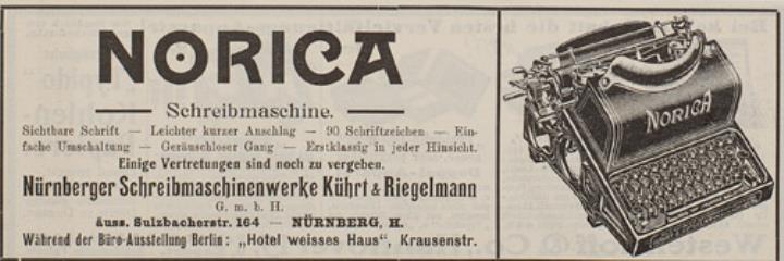Werbeanzeige für Schreibmaschine Norica monochrom