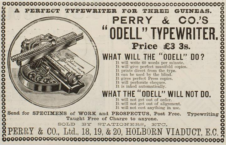 Werbeanzeige für Schreibmaschine Odell monochrom