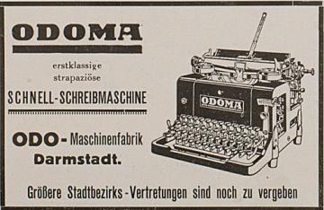 Werbeanzeige für Schreibmaschine Odoma monochrom
