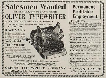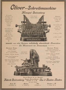 Werbeanzeige für Schreibmaschine Oliver monochrom