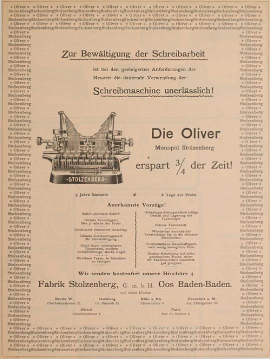Werbeanzeige für Schreibmaschine Oliver monochrom