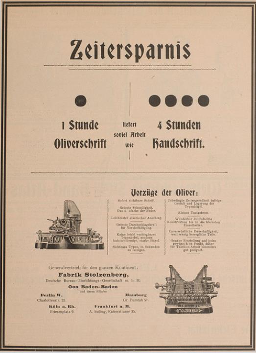 Werbeanzeige für Schreibmaschine Oliver monochrom