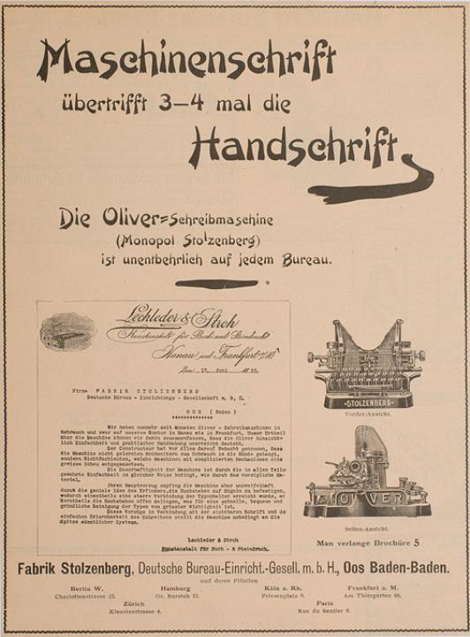 Werbeanzeige für Schreibmaschine Oliver monochrom