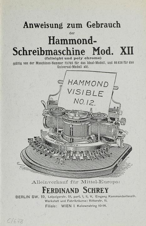 Anweisung zum Gebrauch der Hammond-Schreibmaschine Mod. XII