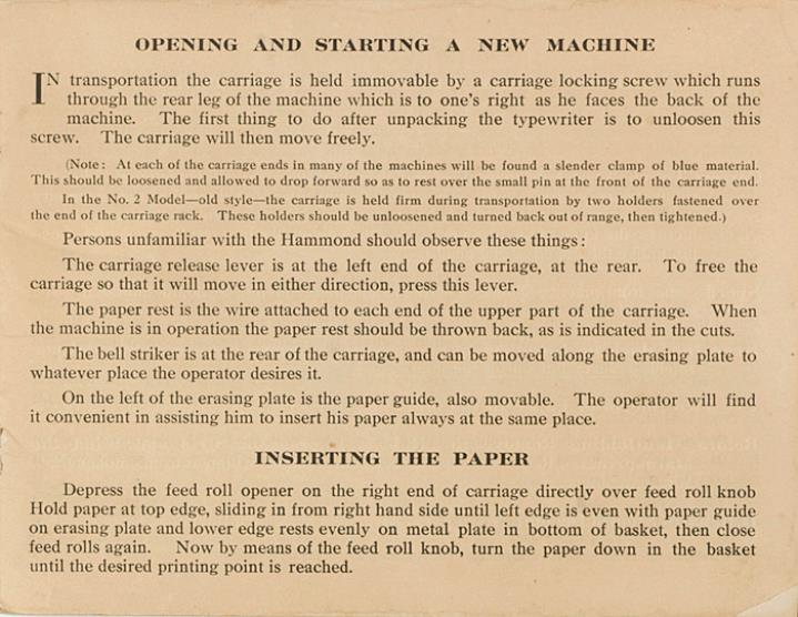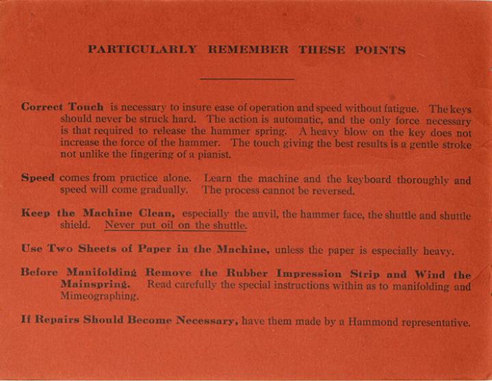 Bedienungsanleitung für Schreibmaschine Hammond Nr. D 20M-1-15-14
