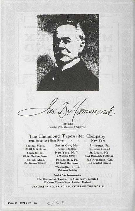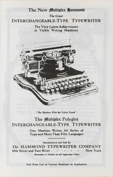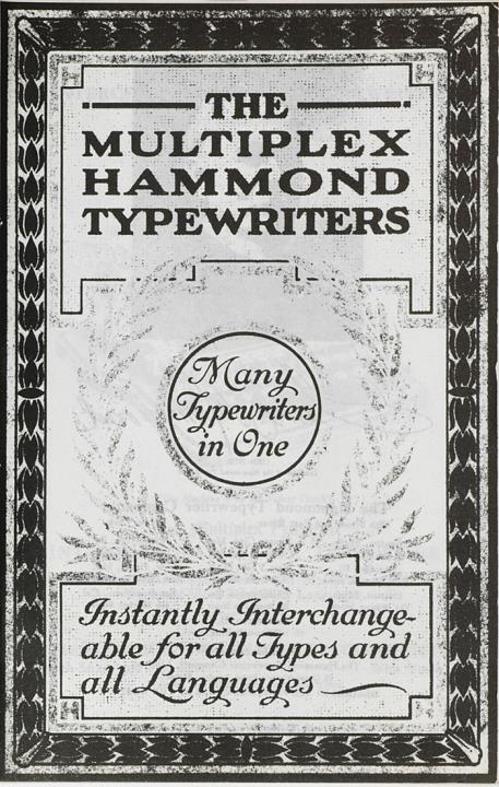 Prospekt mit Anleitung für Schreibmaschine Hammond Multiplex Many Typewriters in One Nr. C.-50M-7-19.K. Fotokopie, drei Exemplare (zwei gebunden)