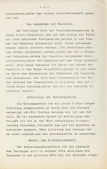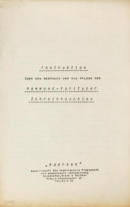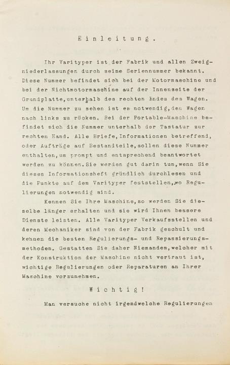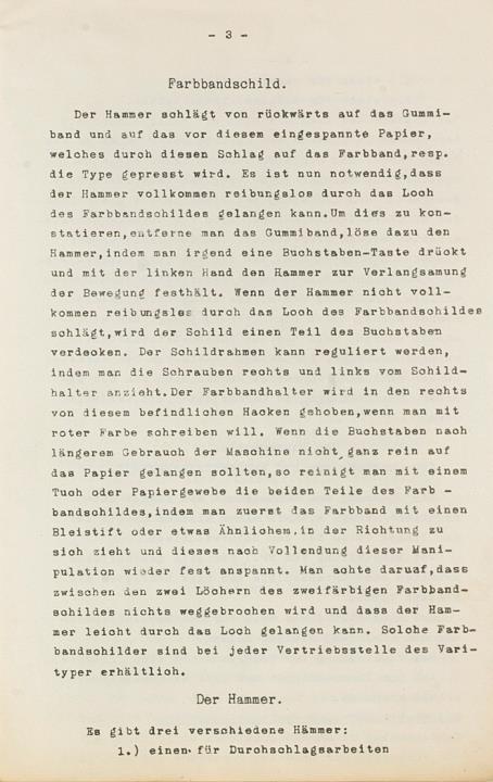 Instruktion über den Gebrauch und die Pflege der Hammond-Varityper Schreibmaschine