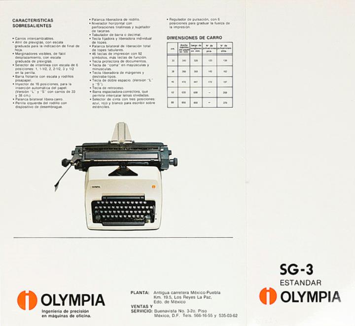 Faltprospekt für Schreibmaschine Olympia SG-3