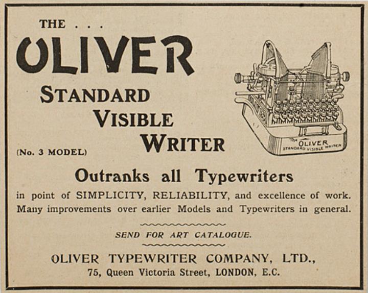 Werbeanzeige für Schreibmaschine Oliver monochrom