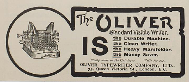 Werbeanzeige für Schreibmaschine Oliver monochrom