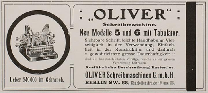 Werbeanzeige für Schreibmaschine Oliver monochrom