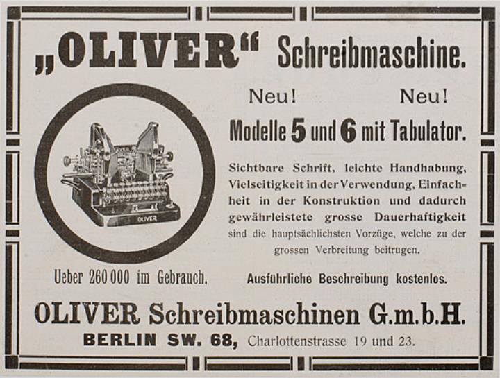 Werbeanzeige für Schreibmaschinen Oliver monochrom