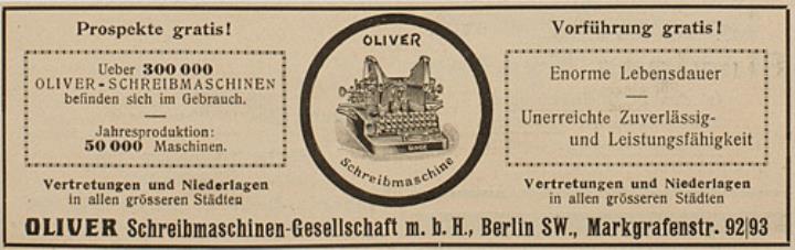Werbeanzeige für Schreibmaschine Oliver monochrom