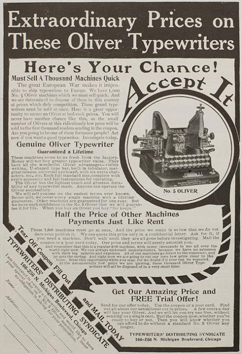 Werbeanzeige für Schreibmaschine Oliver monochrom