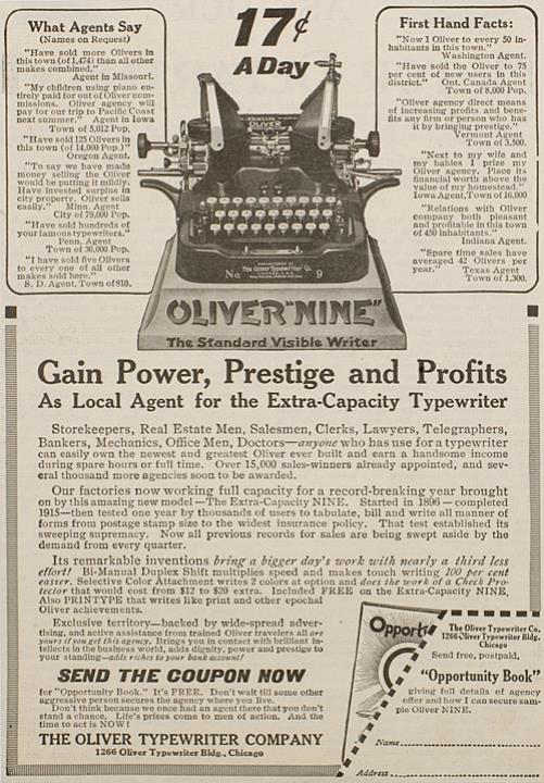 Werbeanzeige für Schreibmaschine Oliver 9 monochrom
