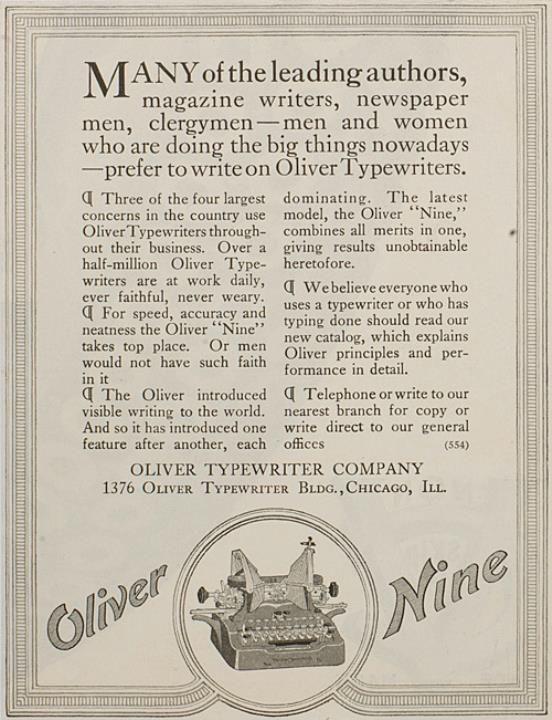Werbeanzeige für Schreibmaschine Oliver 9 monochrom