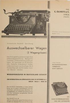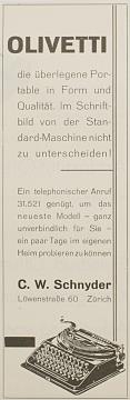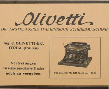 Werbeanzeige für Schreibmaschine Olivetti monochrom