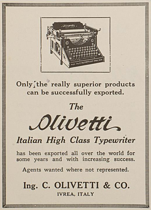 Werbeanzeige für Schreibmaschine Olivetti monochrom