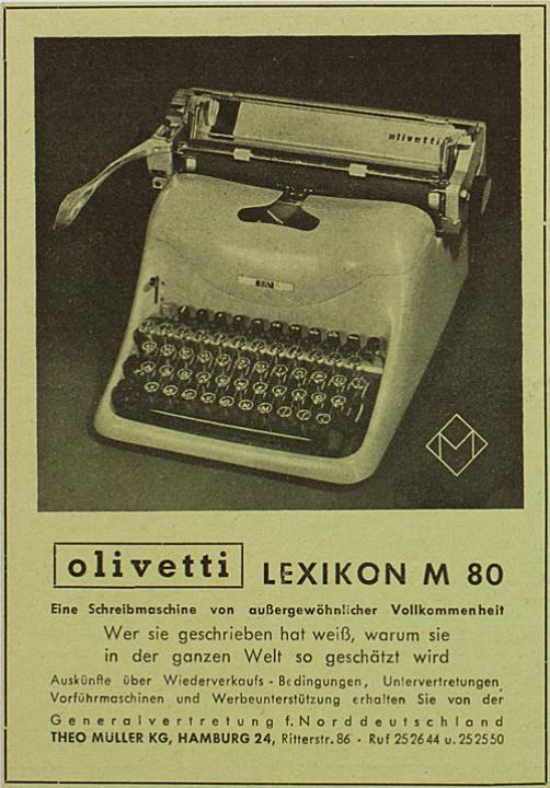 Werbeanzeige für Schreibmaschine Olivetti Lexikon M80 monochrom