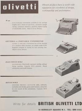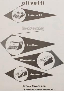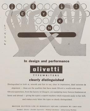 Werbeanzeige für Schreibmaschine Olivetti monochrom