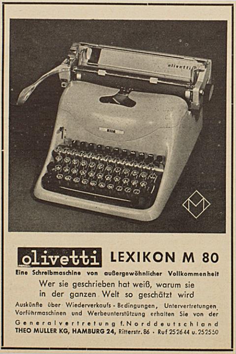 Werbeanzeige für Schreibmaschine Olivetti Lexikon M80 monochrom