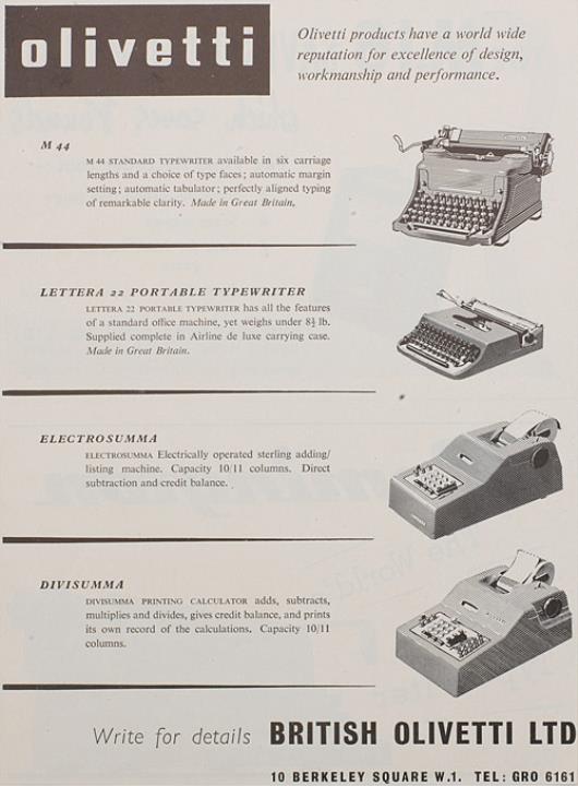 Werbeanzeige für Schreibmaschinen und Rechenmaschinen Olivetti monochrom
