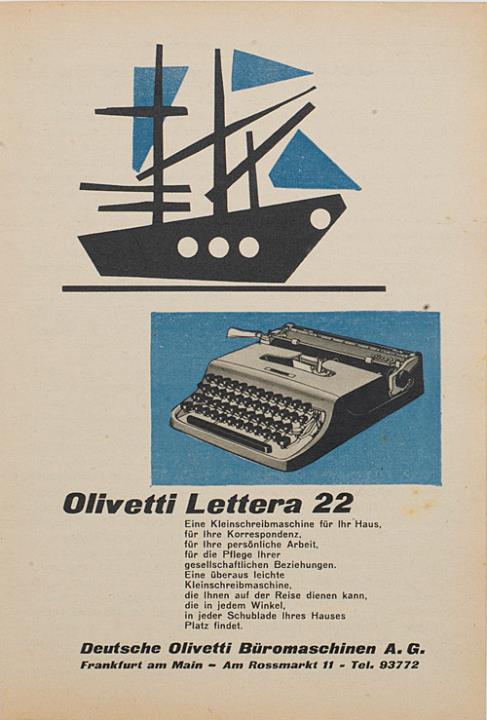 Werbeanzeige für Schreibmaschine Olivetti Lettera 22 polychrom