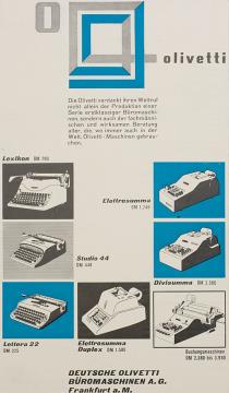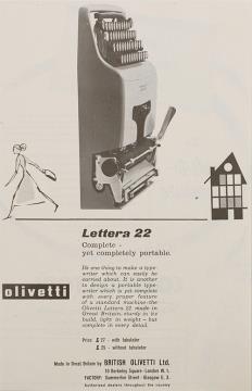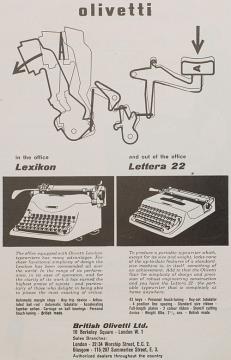 Werbeanzeige für Schreibmaschinen Olivetti Lexikon und Lettera 22 monochrom