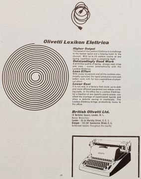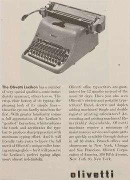 Werbeanzeige für Schreibmaschine Olivetti Lexikon Elettrica monochrom