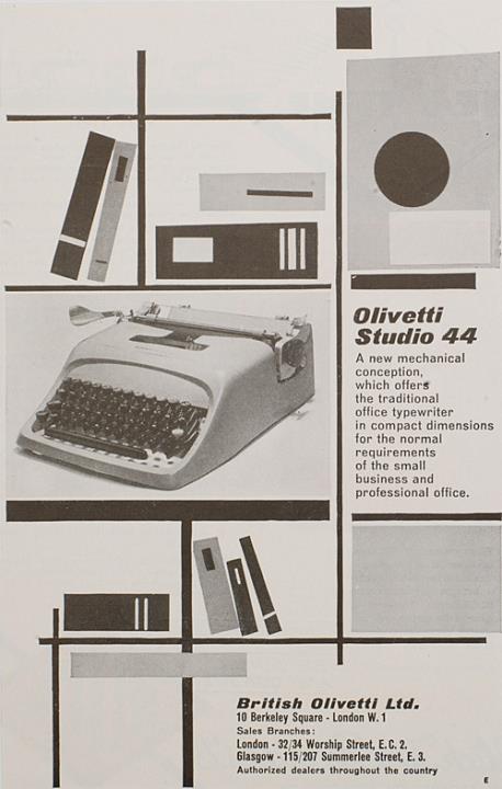 Werbeanzeige für Schreibmaschine Olivetti Studio 44 monochrom