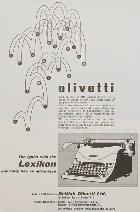 Werbeanzeige für Schreibmaschine Olivetti Lexikon monochrom