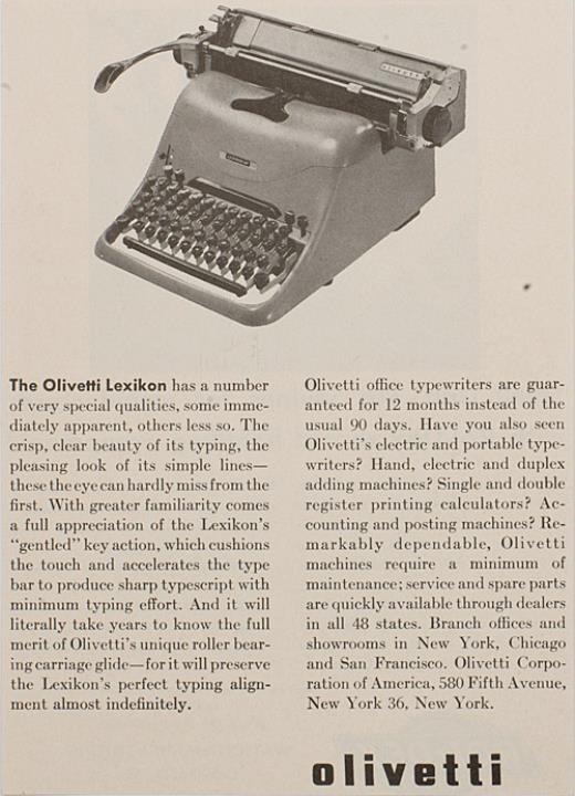 Werbeanzeige für Schreibmaschine Olivetti Lexikon monochrom