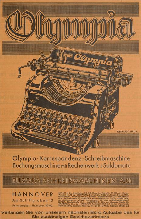 Werbeanzeige für Schreibmaschine Olympia monochrom