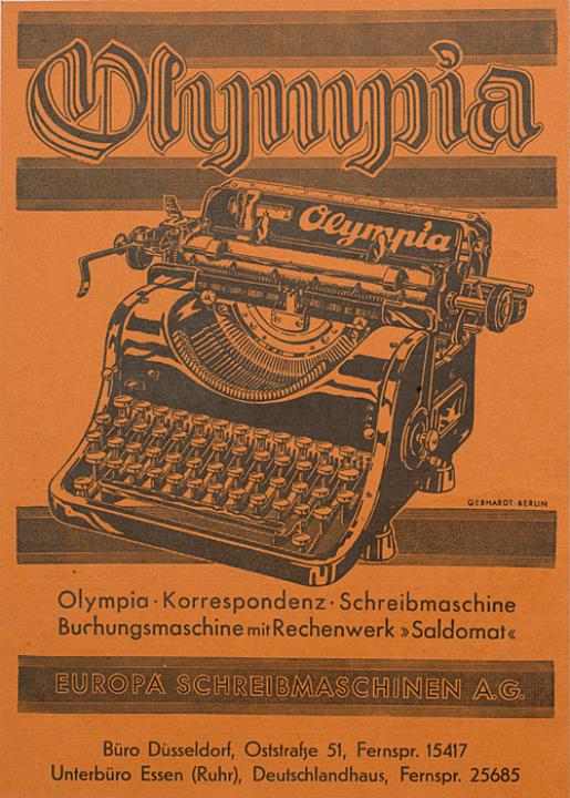 Werbeanzeige für Schreibmaschine Olympia monochrom