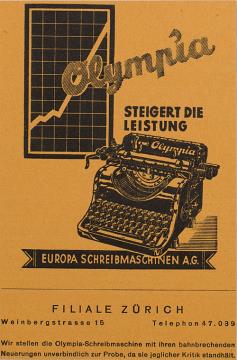 Werbeanzeige für Schreibmaschinen Olympia monochrom