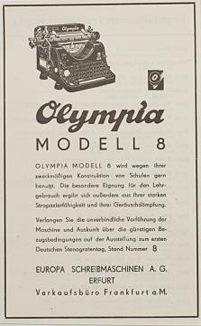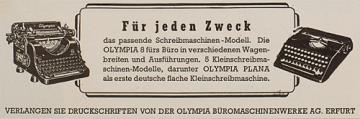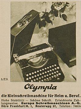 Werbeanzeige für Schreibmaschine Olympia monochrom