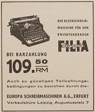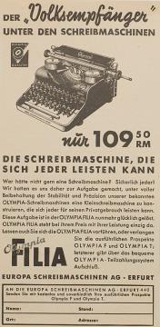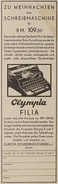 Werbeanzeige für Schreibmaschine Olympia Filia monochrom